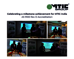 On 29th October, at the MTIC InterCert India office in Bangalore, India, with the participation of Dipl.-Ing. Feridoon Sergizzarea, President & CEO of MTIC Group, we proudly celebrated the achievement of AS 9100 Rev D accreditation under the Aerospace Quality Management System (AQMS/ICOP) scheme.